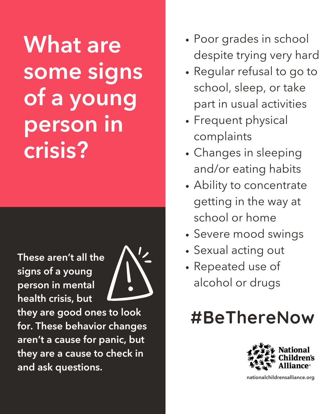 One thing we've learned after helping millions of kids get help and go back to being kids: a caregiver or other trusted adult is the single biggest support a child has. And what that child values most is your presence. Get social graphics to share, information about youth mental health, and what you can do at any point in a child's life to build trust and strengthen the relationship, just by making memories.